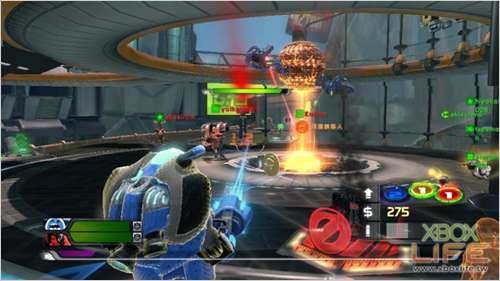 这周推出的Arcade新作《MondayNightCombat》结合了塔防与《魔兽DotA》的要素,是一款相当热血有趣的第三人称动作射击游戏。玩家在游戏中可以从六个兵种当中选择一个,每个兵种皆各具特色与优劣之处,玩家透过XboxLIVE进行线上游戏时得与队友截长补短、携手合作,才