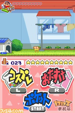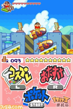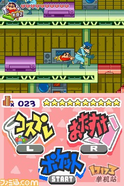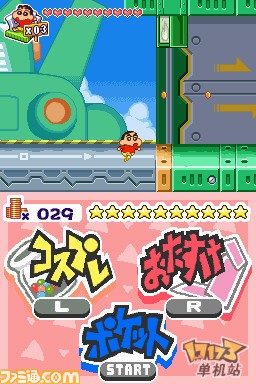 虽然臼井仪人老师已经离我们而去,但是他留下的经典作品《蜡笔小新》系列还不会结束。为纪念《蜡笔小新》20周年,小新活跃的新作游戏将再次在NDS平台上登场。在这次游戏中,小新将在全新的主题公园“ショックガ~ン”内和“模型4魔人”对抗而展开全新的冒险。我们的主人公小新和协助小新冒险的模