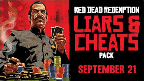 RockStar公布了《荒野大镖客》游戏最新DLC《说谎者与骗子》(Liars and cheats)的发售日期,本下载资源将于2010年9月21日在XBOX Live和PSN上全球同步提供,售价为800微软点(PSN上为9.99美元)。DLC提供了丰富的附加内容和新模式让玩家尽情享受西部冒险乐趣。