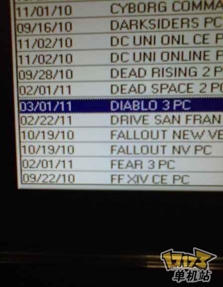 据说有人拿着黑莓拍下了GameStop内部销售系统的数据,其中《Diablo 3》被排在2011年3月1号: