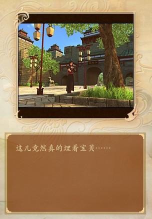 材料集齐后交给乐宝宝,他告诉说从城门进来的左手边第一棵树下埋着宝贝。