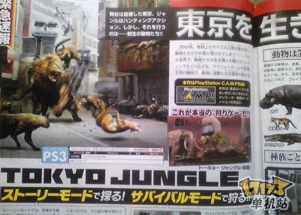 由SCEJ勇者别嚣张小组PlayStationC.A.M.P开发的《东京丛林(TOKYOJUNGLE)》正式公布。舞台为崩坏后的东京,20XX年。地球上所有的人类都灭亡了,只剩下都是动物的世界。在这样的世界中动物们面临生存问题展开狩猎,类型为狩猎生存。但狩猎和被狩猎的都是野
