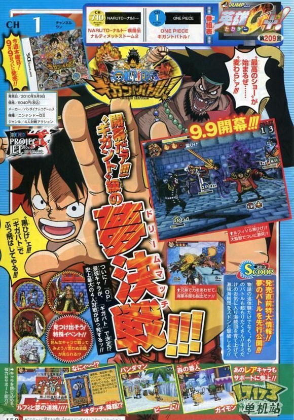 NDS的“海贼王”系列最新游戏《海贼王:巨人战争》即将在9月9日推出了,这款作品最大的特征在于可以从游戏中登场的个性丰富的人物角色们中组成自己的原创海盗团队。游戏也将可以让玩家完全组织全新的故事,而不遵循原作的故事发展,可以说也是本作的一大魅力了。 这次杂志的新情报室