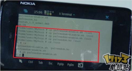 再断开N900的USB连接。进入XT终端,使用命令行启用管理员权限,并将那三个文件拷贝到/root目录下。具体命令如下:
