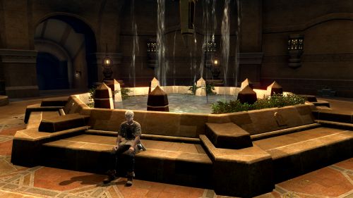 有着在“乌尔达哈”被当成贵重资源的喷水流动着,并种植着各种高价花草的方庭,虽然原本是王家的舞会场所,不过近年来却因为王室财政维持困难而让渡给市民使用。