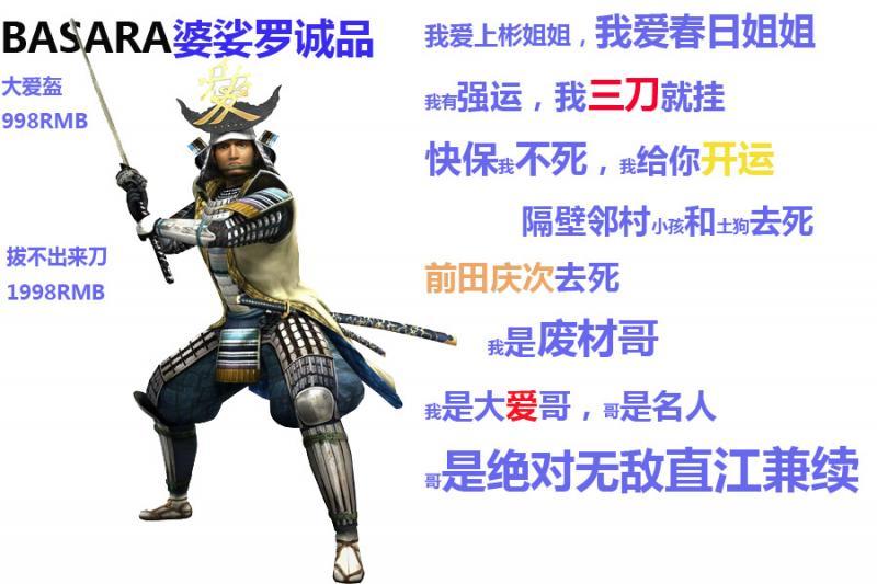 其实这玩意做起来没什么太大的技术~于是乎拿BASARA做素材恶搞了一下~~~目前只做了四张~~如果大家觉得有意思的话~我可以继续做~当然大家也可自己试试~~PS很快就能搞定一张