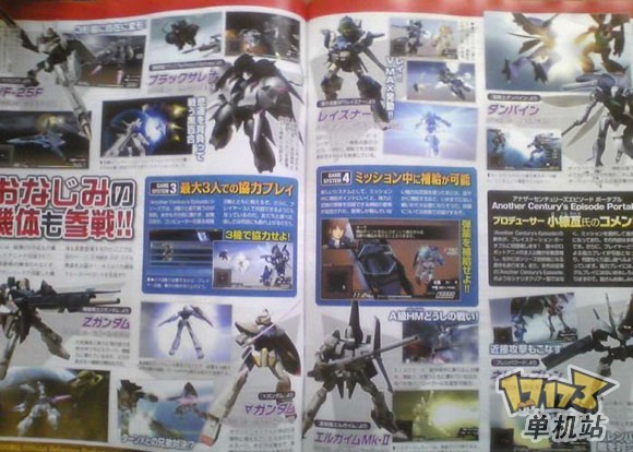 在这次不仅在剧情中,玩家还可以在任务中选择。使用任务通关之获得的ACE点数获得机体。本次还对应最多三人通讯游戏,在单人游戏中采用的是指挥CPU作战的僚机系统(类似《高达生存突击》),在任务中的补给点还可以给机体进行HP和弹药的补给。