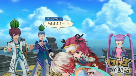 本次公布的最新截图则是游戏在料理合成的步骤截,还有装饰品、称号、SKILL的最新截图,如果下载过之前最新配信的DEMO的话可以更好的了解到游戏。从新截图来看,这作的恶搞内容依旧保留,头顶西瓜互相扯淡的场面,背着乌龟壳等等……至于《传说》系列中的经典纸牌游戏也被保留,卡片还有追加。