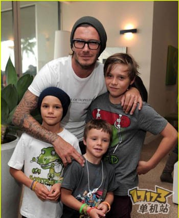 贝克汉姆日前携他的三个儿子参加了在*****贝弗利山庄举办的微软XBOX360体感周边外设Kinect的发售会。另外出席的还有:Robbie Amell和Italia Ricci,《法庭内外》的主演MarkPaul Gosselaar。