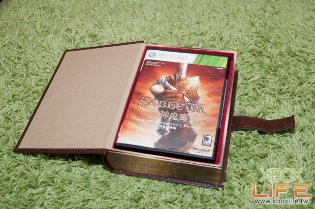 《神鬼寓言3》的限量珍藏版製作成精装书的样式,封盒表面以皮革包覆,钮扣以磁铁吸附,方面拆装。