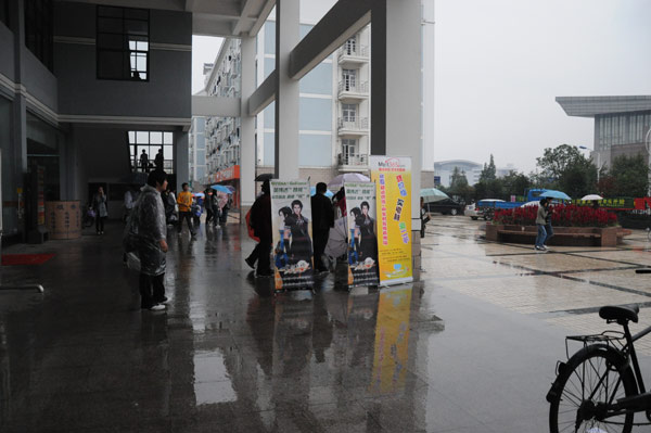 雨中屹立在各大校园中的《古剑奇谭》展板