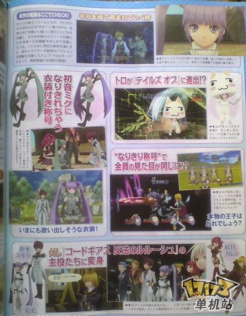 《圣恩传说F》距上次的DLC服装曝光后一个星期,现在果然又推出全新的DLC服装了,这次服装居然是“叛逆的鲁鲁修”。服装上登场客串的有ZERO、卡莲、CC、朱雀,主角居然不是ZERO。不过NBGI的服装DLC我们都有目共睹过好多次了,收费价格高相当的高。