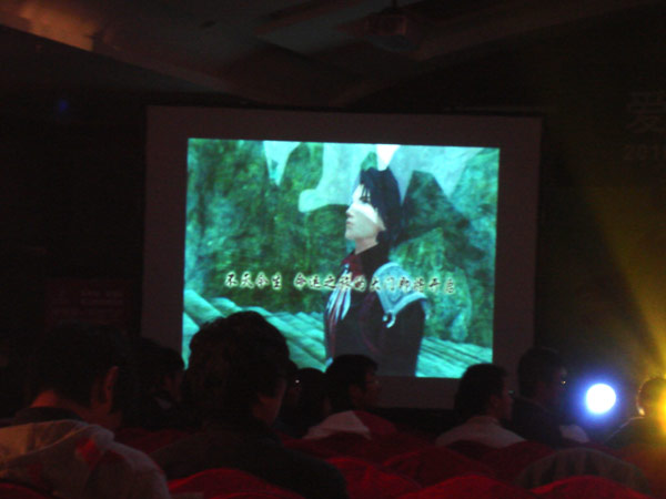 现场同学通过大屏幕观看《古剑奇谭》的宣传动画
