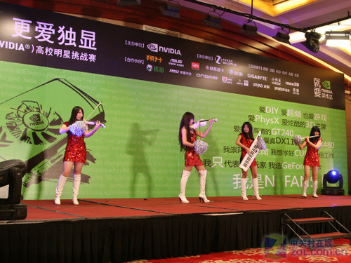 为了活跃现场气氛,除了精彩的游戏试玩和抽奖活动以外,本次活动还特别请来了美女乐团为这次活动打气。四位美女乐手运用小提琴等演奏乐器为同学们带来了非同一般的视听享受。