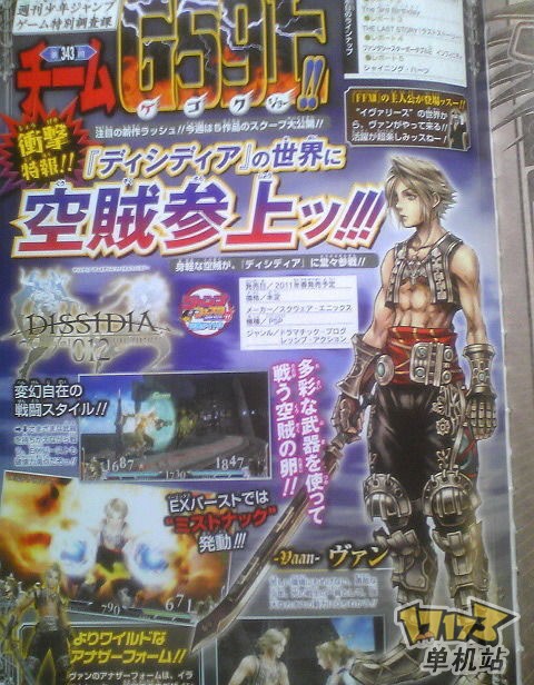 最新的一期日本杂志向我们透露了《最终幻想12》主角Vaan(FF系列最没存在感主角)将在《最终幻想:纷争012》中登场!Vaan服装由天野喜孝设计,很有曾经那个“拯救水晶”时代的味道。
