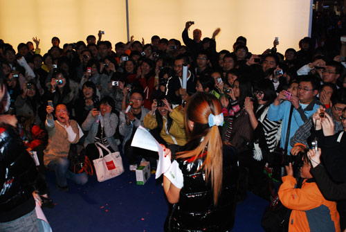 小展台活动开始前,玩家们已经聚集在展台周围,等待着问答活动的开始和配音老师的到来