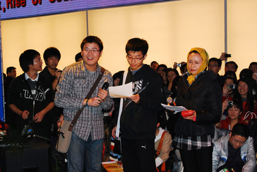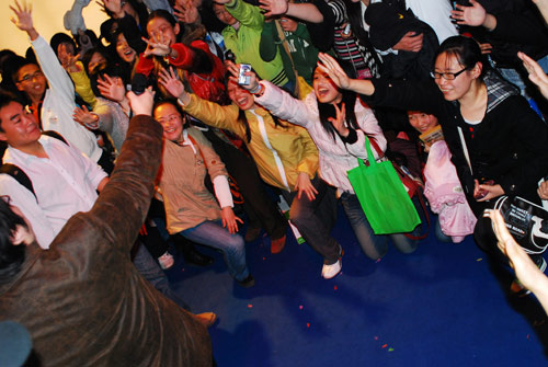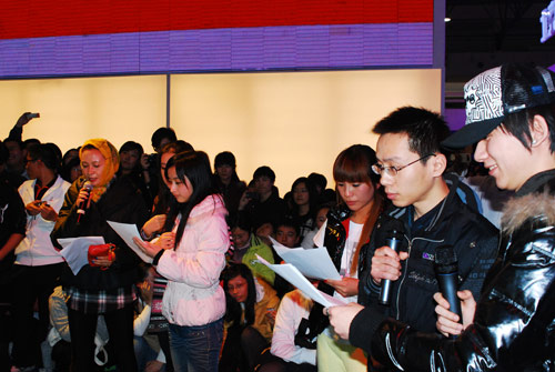 台下热情的玩家把展台围的水泄不通,争相举手参与活动