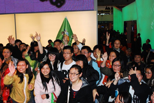 玩家早早的就来到了展会现场,有序的排队等待,准备进行游戏3D版和语音版的试玩