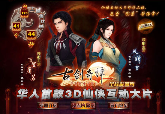 今天我们将邀请各位玩家一同揭开华人首部3D仙侠互动电影——《古剑奇谭》全程配音版的神秘面纱,一种崭新的游戏体验即将呈现在您的眼前。同时,我们隆重推出全程配音版的首个预告片,值得一提的是,此预告片是由我们在古剑原创赛视频篇的追加活动中由“花月汐殇”倾情打造的,在此特别表示感谢。