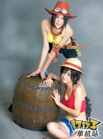 著名COER岚陵萧萧声和果优优出品的姐妹情版《海贼王》同人女体COSPLAY。岚陵萧萧声饰艾斯、果优优饰路飞。日本人气动漫游戏作品《海贼王》的电视版剧情正演到高潮--为救自己的哥哥艾斯路飞在拼死地战斗。热烈真实的兄弟之情在令大家感动之外,也让不少同人yy画家有了女体版路飞
