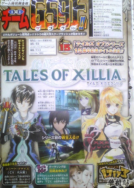 在经历数月的等待之后,NBGI传说系列新作《西利亚传说(暂译)》(TalesOfXillia)正式公布,该作首次同时使用了传说系列的两大人设:藤岛康介及猪股睦实,男主角由藤岛康介绘制,女主角由猪股睦实绘制。 《西利亚传说(暂译)》将在2011年发售,为PS3独占。更新
