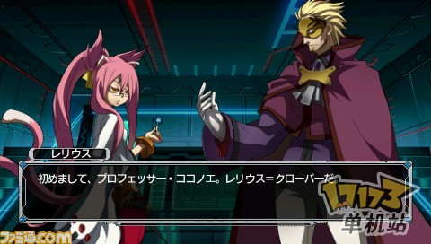 在多平台获得好评的游戏《苍翼默示录:连续变换》,早在PS3、Xbox360、街机中多方面的展开中。而续作《苍翼默示录:连续变换2》也已经在日本的街机平台登场。这次掌机似乎也获得了优势,游戏也在今天公布了PSP版,预定于2011年春季发售,价格5229日元。