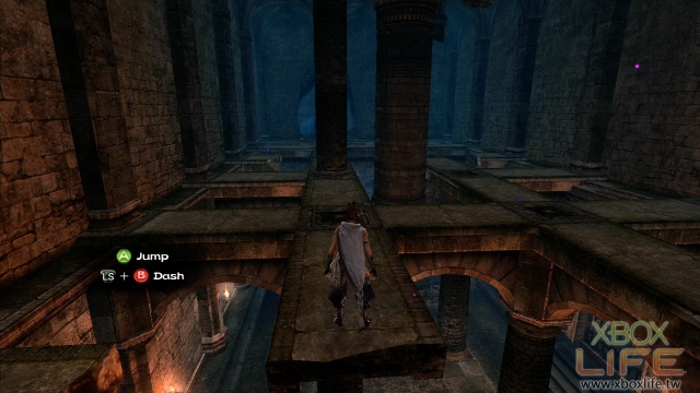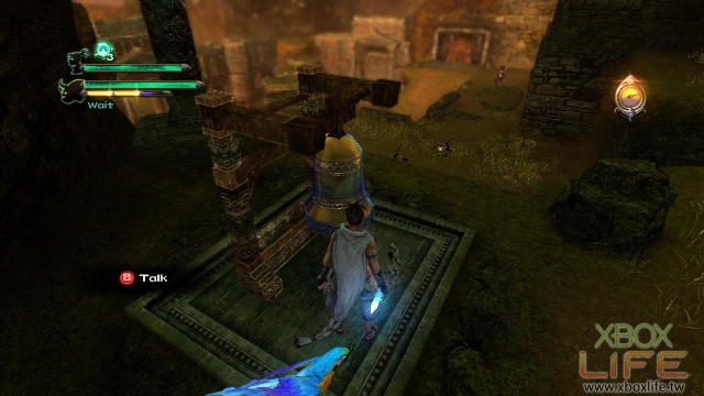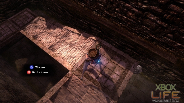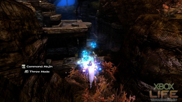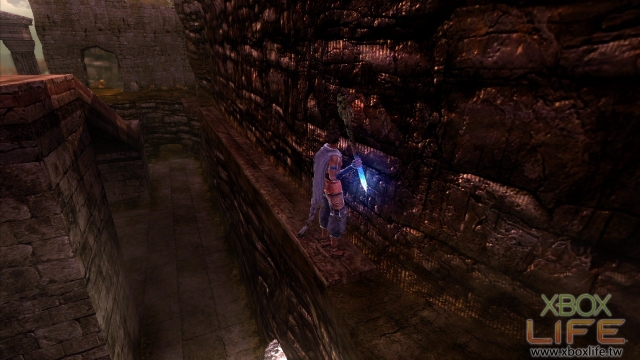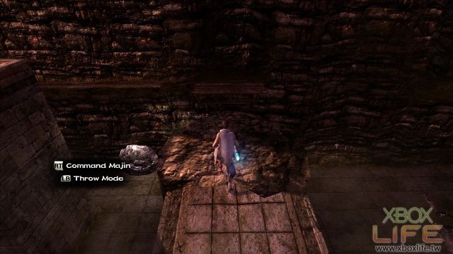 主角不慎跌到遗跡的下层后,按下手把A键从箱子上跳到石柱的横梁,再从尽头的出口跳下去,路上可开启一个宝箱取得Life Shards。从楼梯爬入中央的高塔上找到魔人触发剧情,玩家要找到食物让他回复力量才能破坏锁鍊、重获自由。