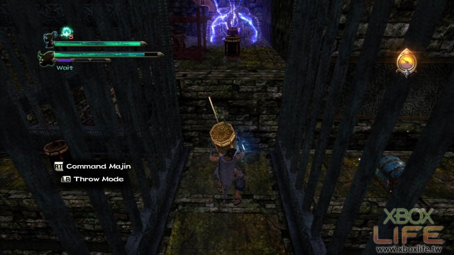 魔人吃下电的果实后,按住手把RB键加Y键能让魔人施展电击攻击,除此之外,电击攻击也能让场景中的手把通电,开启更多未探索的区域。