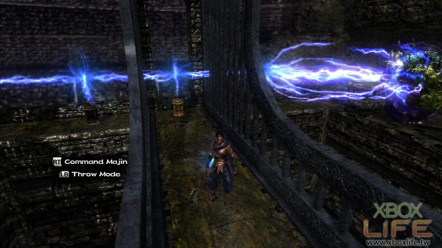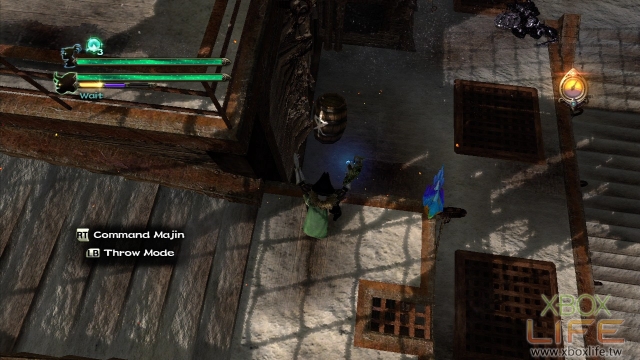 这裡的二楼平台上共有三名弓箭手,利用左侧平台跳上去,并让他们统统跌到一楼让魔人料理后事。