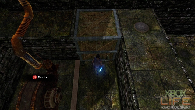 来到此区域先杀掉发电机前的敌人,方便玩家进行下一步动作。利用魔人的背跳到右侧尽头的平台上,再从一旁的缺口跳下去,把地上二个传导器丢到一楼,再利用传导器将电力引入发动机裡即能启动电梯。