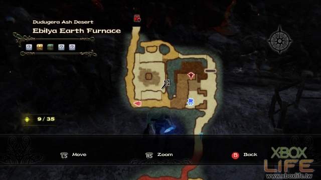 再将炸药放在大门前,朝著炸药丢掷石头让黑暗之眼射爆炸药。爬上红色梯子沿著走廊前进,在走廊的尽头往下跳到扳手的旁边,即可扳动扳手解开门栓,最后带著魔人进入死亡之眼后头的房间裡取得火的果实。