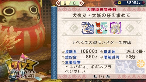 寻找大妖獠牙《怪物猎人P3》犬夜叉配信