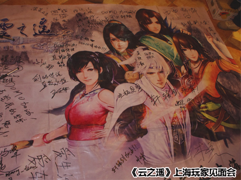 在上海签售会上,上海轩辕剑后援会,专们设计了一枚《云之遥》印章,带给蔡魔头和毛兽。在场的每位玩家在得到签名的同时,还加盖了这枚印章。而后援会的会员,还在现场帮助维持秩序,组织玩家进行签名。为了感谢后援会成员们对于轩辕剑系列的支持,DOMO两位成员,还在会后,参加了寰宇之星工作人员临时组织的“追加玩家见面会”。虽然是临时见面会,但气氛依然热烈,不时爆出阵阵掌声,大家就轩辕剑的问题与建议,进行了交流与沟通,其中不少意见,蔡魔头和毛兽将会带回去与其他DOMO成员分享。