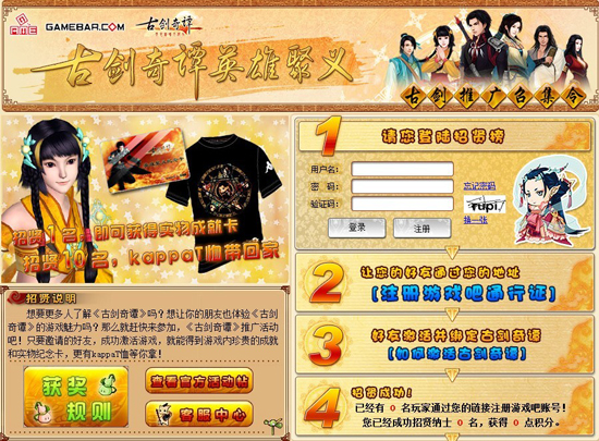 招贤纳士,英雄聚义,《古剑奇谭》非返利,非现金,“珍藏级礼品再收藏”推广员系统今日正式上线,想要更多人了解《古剑奇谭》吗?想让你的朋友也仗剑行走于江湖吗?想拥有绝版珍藏周边吗?那么就赶快来参加,《古剑奇谭》推广活动吧!神马返利,神马现金的都是浮云。绝版,只有绝版才足够的给力!