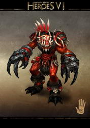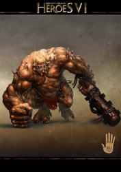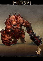 | 独眼巨人(Cyclops)和地精正相反。他们同样是兽人实验中的“失败品”,但造成这一情况的原因却是大型恶魔的血脉。他们血液中恶魔的那一半成为了主宰,于是他们变成了畸巨的庞然大物,身体和精神同时被混乱的冲动所扭曲。独眼巨人通常有十尺以上的身高,看上去像恶魔远多过像人类。他们所共有的一个有趣的特征就是他们只有一只眼睛:一只巨大的、没有瞳孔的、散发着红光的眼睛。没人知道这种变异从何而来;一种较受巫师公认的理论认为这来自“混乱之印(mark of Chaos)”,环状的自噬之蛇,龙神鄂加斯的徽记。虽然天性平和而且思维像孩子一样简单,在他们受伤了的时候(生理上和心理上都可以)他们会进入一种爆炸性的、可怖的愤怒状态。这使得他们对包括同族在内的所有人都是危险的存在。虽然很多小说里都喜欢驾驭他们力量的情节,事实上只有兽人有这种力量、耐心和勇气去“驯化”他们,并且在村庄中给他们作为“劳力”所应有的地位——以及在战场上,作为重型突击队和“攻城武器”。 |