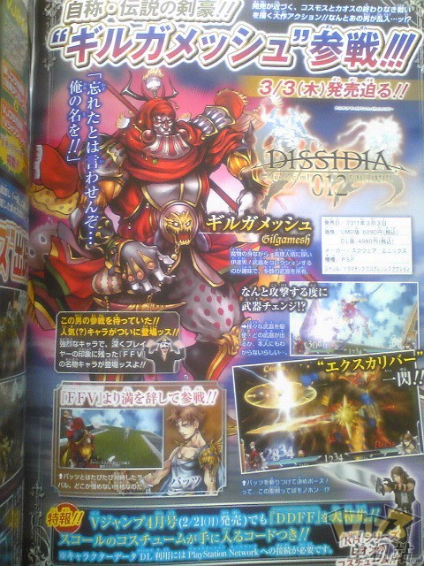 Square-Enix预定于2011年3月3日发售的FF梦幻乱斗大作《最终幻想:纷争012》,本周又公布了一名新参战角色——FF5的人气角色吉尔伽美什。