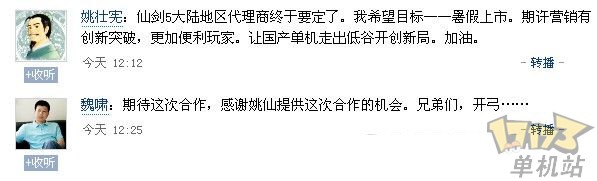 单机大作《仙剑奇侠传5》今日宣布大陆代理已经确定,代理商为百游。姚仙和百游副总裁魏啸在微博上相继确认了代理事宜。百游市场总监吴亚辉先生表示将在3月底召开发布会。吴先生表示仙剑5将会在暑期档上市,对于单机游戏来说,暑期档是最好的上市时间。 进入仙剑奇侠传5论坛专版>>