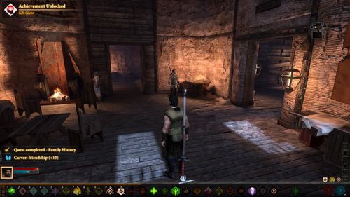 地窖里面的东西还是不少的。注意来到下面地图指示北部的储藏室。在其中一个箱子里面拿去物品可以开启任务FAMILY HISTORY。FAMILY HISTORY这个任务很简单。就是跑路找指定的NPC对话来了解你家族的历史