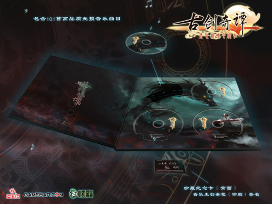 在众多玩家的翘首企盼中,整合了《古剑奇谭》游戏中101首高品质无损音乐曲目的《古剑奇谭》原声音乐集终于在今日正式发售与大家见面。华丽的包装、精致的一体化设计、丰富的内容、贴心的赠品,如此让人惊叹的《古剑奇谭》原声音乐集以99元RMB的有力价格投放市场。这样优惠的价格,大家千