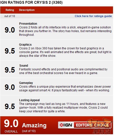 在经过泄露版等风波以后,《孤岛危机2》终于上市了,IGN的评分日前正式打出9.0的高分,在画面和耐玩度上大赞了《孤岛危机2》一起来看下吧!