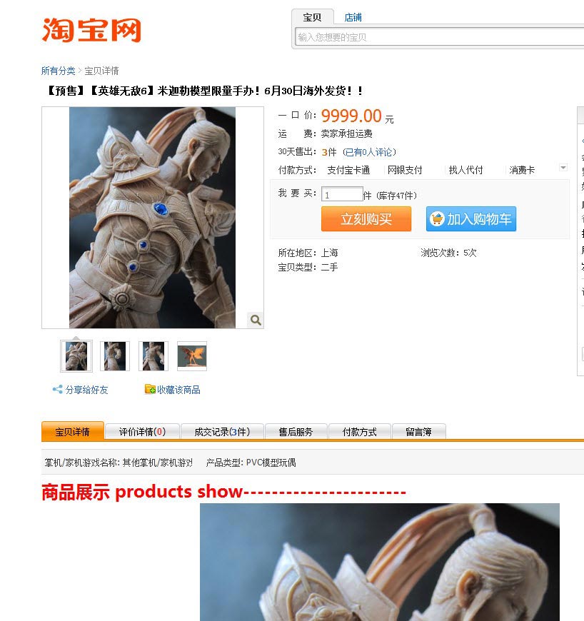而近日,却有人发现这一偶像级的英雄人物的手办居然在淘宝开启了预购,其定价更是让人惊讶不已:RMB9999元的预购价,创下了游戏单个模型手办预购价格的历史新高!