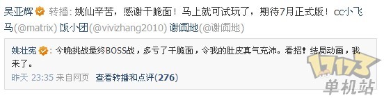 最新消息:百游市场总监、营销中心总监吴亚辉刚刚在微博中回应试玩版本为公司内部的试玩,“暂时”不会对外开放。