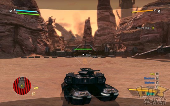 坦克,给力的东东啊,皮厚攻高,总共4种武器模式,分别是主炮、机枪、飞弹和定点炸弹。并且还能飞,虽说飞不太高