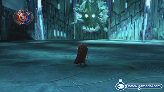 开始就在桥上对面是那个巨脸,直接冲过去将两个发射器干掉后直接攻击巨脸可以打开通道。储存一番后进入竞技场再次遭遇巨脸,开始一场混乱的杂兵战斗,不要担心这些小弟,看准周围的四个冰柱子开始猛砍吧,这些柱子十分抗打,另外要小心地上的冰刺和小弟们的自爆。