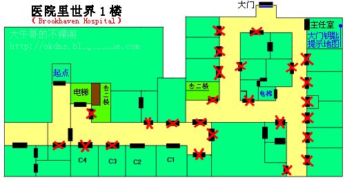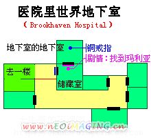 进医院后,大门口墙上可拿到地图,在收发室里屋的文件室(Document Room)的打字机旁拿到紫牛之钥(Purple Bull Key)。