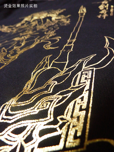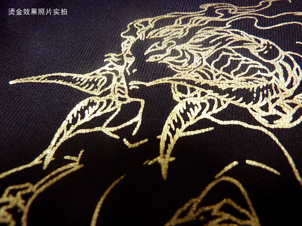 黑色底衫配上烫金图案耀眼夺目,细致的烫金、烫银工艺将图案中的每个微小的细节都能展现得淋漓尽致。