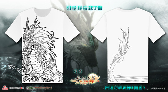 第二期《古剑奇谭》T恤订制活动发布的所有T恤款式均采用限量方式发售,绝对是值得玩家朋友们收藏的佳品。限量珍藏款T恤的图案制作首次使用了《古剑奇谭》研发团队的线描设计原稿,并采用了烫金、烫银等特殊烫印工艺,保证了T恤图案的清晰与美观,色彩更加鲜艳夺目,耐磨,且不易掉色。