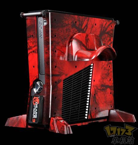 游戏硬件外设改装商品厂商Calibur11联合Epic精心打造了一款XBOX360定制主机,《战争机器3》Vault,和售价高达399美元的《战争机器3》限定同捆版主机不同,这个看上去更酷更热血的《战争机器3》Vault 定制主机仅需要89.99美元的手工费用,和Calibur11此前推出的类似改制商品类似,《战争机器3》Vault的底部同样是Calibur11特色的底座以及背部的手柄放置挂件,只不过这一次的主题色都改成了《战争机器3》的血腥红色。这个改制主机最为耀眼的部分应该算是主机一面的带有LED灯照明的凸出的 Infected Omen兽族头像,这个兽族头像有四种不同的模式,其中的LED灯光带有不同颜色,其中甚至会随着玩家在《战争机器3》游戏中被敌人杀死的次数越多而越红。
