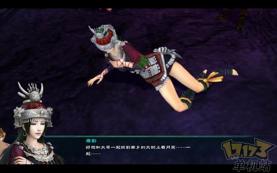 从神降密境出来,走到一个叫青木居的地图。不得不说,环境真的很美,完全就像置身在一幅画一样。很多的鸟叫,当时看到这个地图的时候,我心想,看来是制作组可怜我们玩家经过BOSS苦战,拿点风景来犒劳我们。发现树顶有人声,跑上去一看,才知道是村寨的人在为一个孕妇举行祝福仪式,看到主角来,众人很高兴,将主角奉为上宾,这时候小蛮还调皮的想摸摸那个孕妇姐姐的肚子,四周都是一片欢声笑语,萤火虫四处翩飞,村民载歌载舞,真是一个世外桃源。