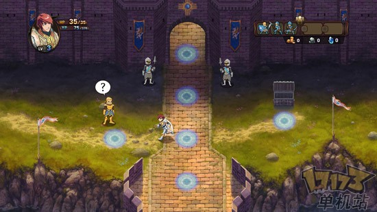 《魔法门之英雄交锋》的战斗方式特别有趣,但在移动上却有那么一点不自在,游戏的移动方式是跟着地图上的光点一步一步地移动,遇到NPC或是宝箱时可以按下A键来互动。在游戏中按下Y键可以检视目前主角的状况与兵种数目,还可以在此更换目前所使用的装备。